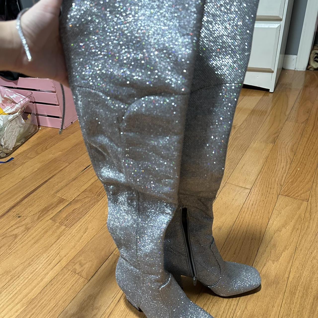 silver sparkly over the knee boots brand new, - Depop silver sparkly booties